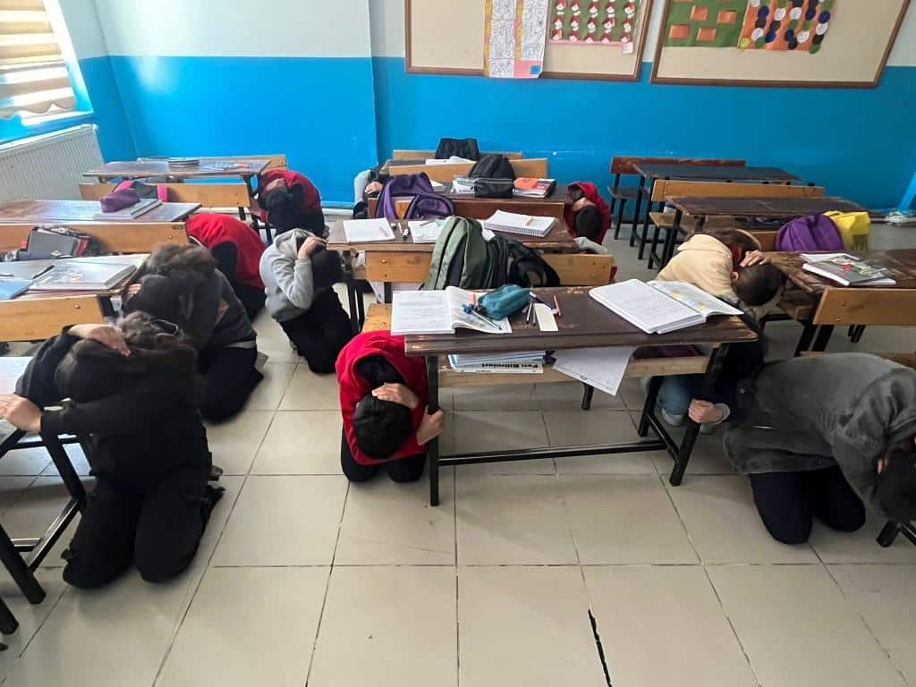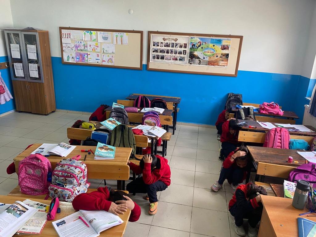 Tatbikat, ilk siren sesiyle birlikte “Çök – Kapan – Tutun” uygulamasının yapılmasıyla başladı. Öğrenciler ve öğretmenler, sınıf içinde belirlenen güvenli alanlarda bu davranış biçimini uygulayarak deprem anında yapılması gereken doğru hareketleri pekiştirdi. İkinci siren sesiyle birlikte, görevli personelin koordinasyonunda sınıflardan düzenli bir şekilde tahliye işlemi gerçekleştirildi.